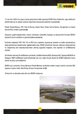 13 mm’den 3300 mm çapa uzanan geniş boru üretim gamıyla VESBO Boru Sistemleri, yapı sektörüne